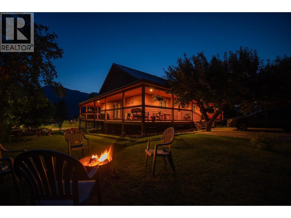 A newer custom home on a large lot in a quiet part of town near Silverton Creek and a beautiful view of Slocan Lake and the Valhallas. One block to a ""private"" beach and boat launch is nearby as well. The home has over 1400 sqft of continuous veranda with 2 sets of French doors leading to it. Inside is an open feel 2-bedroom layout with 2 baths. relaxing 6ft tub and ample closets. Vaulted spacious, one level, living space with Blaze King free standing woodstove to add to the Kootenay charm. Custom solid maple kitchen cabinets. Oil-rubbed bronze pulls and crystal knobs. Top of the line cabinets built by a local. Custom-made floating shelves on either side of the deep farm style kitchen sink. Kitchen Island. All included appliances are of high quality. The wood decking, exterior trim and interior is all locally sourced material through Harrop-Proctor. Mature cherry trees, One-apple tree, One pear tree, One Mountain Ash, One Maple. Lilacs and privacy hedges. Fruit trees have been professionally pruned annually. Ply-Gem windows and doors. All windows are clad for weather protection. All interior trim is locally sourced, and baseboards are ready to go for new flooring. In-Floor Heat. Hydronic Boiler. 4 zones and Life Cycle HRV system. Add in Westform standing seam metal roofing. Furnishings are negotiable outside of a Contract of Purchase and Sale. (id:6289)