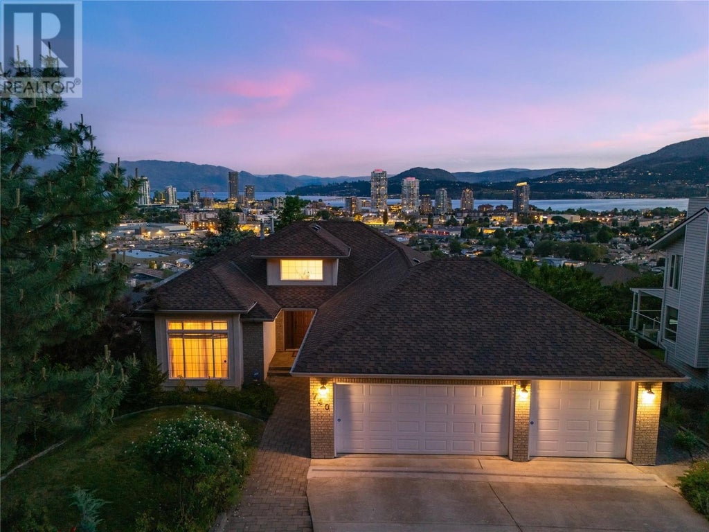 Perfectly positioned to capture panoramic lake, city, bridge, and mountain views, this spacious walk-out rancher offers over 3,600 sq. ft. of well-maintained living in a central yet quiet Kelowna neighbourhood. Set on a 0.25-acre lot minutes to downtown, shops, schools, and dining, the home blends comfort, flexibility, and character.Inside, large windows flood the home with natural light and frame the breathtaking scenery. Ideal for family life, the layout includes 4 bedrooms, 3 full bathrooms, multiple living areas, and space to easily convert to a 5th bedroom. Real hardwood and tile flooring, granite countertops, and stainless appliances reflect quality throughout. The kitchen opens to a casual family room and view deck—perfect for relaxed mornings and sunset evenings. The formal living and dining rooms offer refined hosting space, while the primary suite enjoys a walk-in closet, ensuite, and deck access. The lower level holds additional bedrooms, a full bath, and flexible space for gym, office, or studio. Walk out to a private yard with fruit trees, mature landscaping, garden, and flat green space suited for play or a future pool. A third level with garden access offers added storage and plumbing for future potential. A triple garage provides ample storage and hobby space. With Knox Mountain’s trails steps away, this is a rare opportunity to own a lake view property in one of Kelowna’s most sought-after settings. (id:6289)