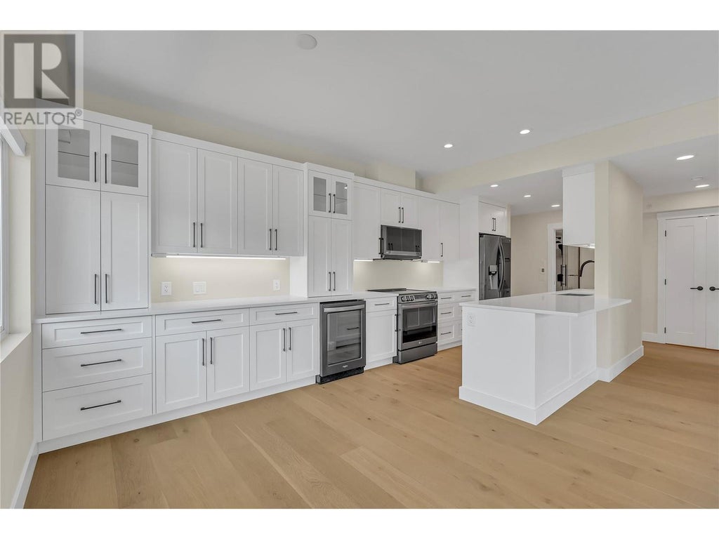 Welcome to this fully renovated, luxurious 2 bedroom, 2 bathroom condo with stunning views of Skaha Lake and Skaha Lake Park. Located on the top floor facing the lake, this corner unit offers the perfect blend of comfort, style, and functionality with high-end finishes throughout. Enjoy the spacious open floor plan with engineered hardwood flooring and a high-end kitchen featuring quartz countertops, walk in pantry, top of the line appliances including a bar fridge and upgraded cabinetry with plenty of storage space. Just off the private lakeview deck, the fireplace with brick surround and mantel is perfect for cozy nights. Relax on your own private balcony off the primary bedroom which also has a walk-in closet and ensuite with heated tile floors. Imagine the peaceful tranquility of Skaha Lake Park directly across the street, ideal for outdoor activities or simply relaxing by the water. With pets allowed (with restrictions), this home is the perfect retreat for those seeking a luxury lifestyle in a prime location. The unit includes one designated covered parkade parking stall, additional guest parking and a storage locker. Don’t miss the opportunity to live in this one-of-a-kind, fully renovated condo with all the features you’ve been dreaming of! (id:6289)