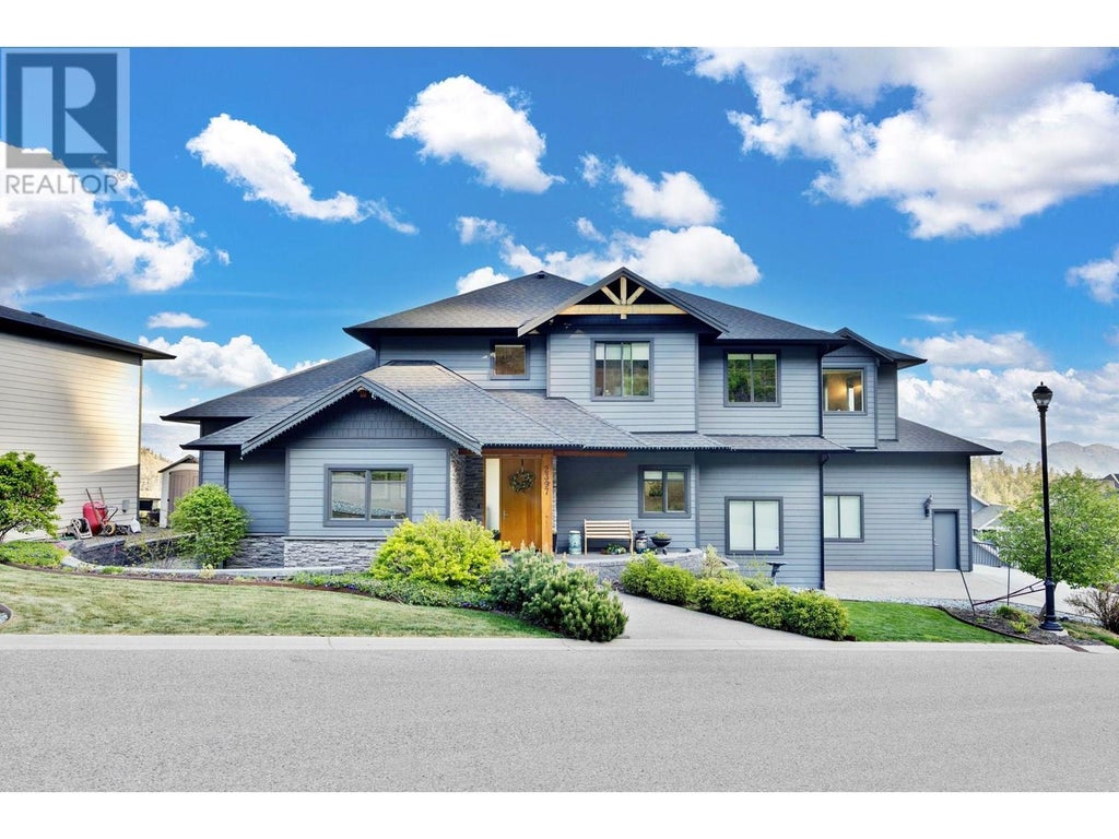 Welcome to elevated Okanagan living! This beautifully crafted home in prestigious Tallus Ridge offers over 3,700 sq. ft. of thoughtfully designed living space with stunning lake, valley, and mountain views. Perfect for multi-generational living, the flexible layout includes a 1-bedroom + den suite with separate entrance, laundry, and private access. The main home features 4 bedrooms and 2.5 bathrooms, wide-plank hardwood floors, soaring 16’ vaulted ceilings, and large windows that flood the home with natural light. The chef-inspired kitchen boasts black stainless appliances, quartz island, and quality cabinetry. The open dining area flows seamlessly onto a covered sundeck ideal for outdoor meals or relaxing with family. Upstairs, the primary suite offers a spa-like ensuite with heated floors, soaker tub, oversized tiled shower, and walk-in wardrobe. Two additional bedrooms and a full bath complete the upper level. A fourth bedroom or office is located near the entry, along with a stylish powder room and laundry. Additional features include built-in ceiling speakers in the ensuite, great room and on the sundeck, a staggered double garage with raised storage platform and plenty of additional parking. Located on a quiet no-thru road, just minutes from schools, hiking and biking trails, Shannon Lake Golf Course, parks, wineries, shopping and a variety of dining and recreation options. Call today for more information and to arrange your private viewing of this gorgeous home! (id:6289)