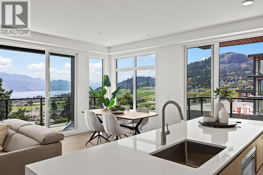 Welcome to Lakeview Village Residences, where luxury meets lifestyle in this brand-new 2-bedroom + den corner unit — an exceptional blend of sophistication, comfort, and design. Two expansive balconies with glass railings frame sweeping lake, pasture and vineyard views, while inside, floor-to-ceiling windows, soaring ceilings, and striking architecture flood the space with natural light. The chef’s kitchen is a showpiece with a waterfall-edge island, gas cooktop, built-in wine fridge, microwave drawer, and elegant luxury vinyl plank flooring. The generous-sized bedrooms, positioned on opposite sides for added privacy, are exquisitely crafted. Retreat to the primary suite and enjoy million-dollar views, a walk-through closet with custom built-ins, and a spa-inspired ensuite complete with heated tile floors. Thoughtfully designed to impress, this home includes oversized decks, two parking stalls, a storage locker plus upgraded deluxe storage room, secure parcel delivery, and the cutting-edge Butterfly access system. Resort-style amenities elevate everyday living with a private pool and hot tub, fitness centre, dog wash station, community gardens, and a year-round indoor greenhouse with hydroponics and irrigation. Perfectly situated steps to the community centre, private school, sports courts, bistro, and market — and just minutes from beaches, boat launches, and world-renowned wineries — this is modern Okanagan living at its finest. (id:6289)