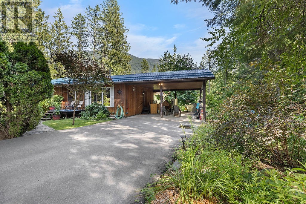 Discover complete privacy and natural beauty in this fully finished home backing onto the peaceful waters of Crawford Creek. Designed to embrace its surroundings, the home is filled with natural light from large windows and offers tranquil creek views from the kitchen and expansive back deck. The bright, open layout includes spacious bedrooms, a walk-out basement, and cozy wood heat for year-round comfort. Warm wood accents throughout add charm and character. Recent upgrades include plumbing improvements, new continuous eave trough, and ongoing care that reflects true pride of ownership. Outside, the meticulously landscaped property features vibrant flower beds, lush gardens, mature trees, and absolute privacy. Truly one of the most incredible outdoor spaces you'll find. Additional features include a paved driveway, an expansive carport with 10' ceilings, and plenty of space for vehicles, storage, or hobbies. Located just minutes from the heart of Crawford Bay, you’ll enjoy a vibrant artisan community, beaches, local shops, access to Kootenay Lake — and you're just a short walk from the world-class Kokanee Springs Golf Course. (id:6289)