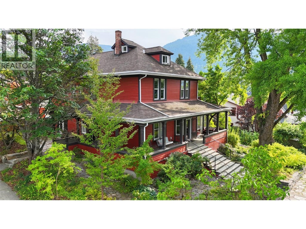 Visit REALTOR website for additional information. Nestled on a prime corner lot in uphill Nelson, this beautifully restored 1894 heritage home blends timeless charm w/ modern comfort. Wainscoting, hardwood floors & abundant natural light create a warm, inviting space where history meets contemporary living. Featured in a published book, this proud home awaits its next chapter. Enjoy quiet mornings/cozy evenings on the verandas or private patio. Inside, the kitchen centers around a welcoming island, perfect for gathering. Relax by fireplace in the inviting living room or take a nap in the expansive bedrooms. Outside, a spacious yard boasts an incredible staircase & side yard can host a carriage house & is subdividable. Ideal as a cherished family home, option to have a character-filled business or boutique AirBnb for extra revenue-unique opportunity! (id:6289)