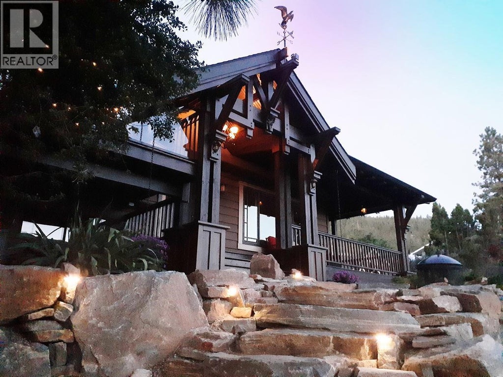 Welcome to this charming timber frame-style home in McKinley Landing, where rustic elegance meets relaxed Okanagan living. Thoughtfully maintained and filled with character, this 4-bedroom, 2-bathroom home offers stunning lake views, a flexible multi-level layout, and a location just a 5-minute stroll to a quiet, sun-drenched public beach with dock access. Inside, warm wood tones, laminate flooring, and high-end carpentry details create a welcoming ambiance. The bright kitchen features a breakfast bar island and built-in desk area, while the living and dining spaces open to a covered wraparound cedar deck—perfect for taking in panoramic views or hosting candlelit evenings under the stars. The upper level boasts a dreamy primary suite with walk-in closet, cozy nook, and 12’ sliding doors to a private lakeview deck. A secondary bedroom features a built-in kitchenette—ideal for guests or short-term stays. Downstairs, enjoy two guest bedrooms, a rec room, office with a view, and a fully fenced backyard complete with workshop, storage, and a delightful playhouse. Located on a quiet private road just 10–20 minutes from UBCO, YLW, KGH, and downtown. This is lakeside living with room to grow and space to unwind. (id:6289)