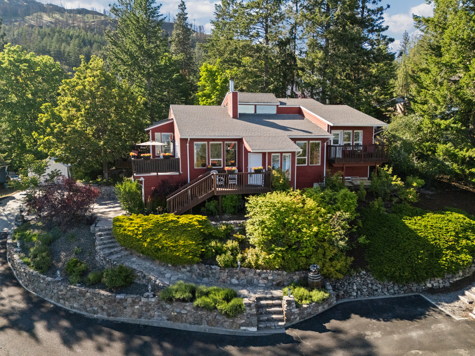 Filled with character, perched atop a beautifully landscaped, half acre lot in a quiet cul-de-sac, this 4,000 sq ft West Kelowna Estates home delivers breathtaking lake and city views, and a floor plan as unique and flexible as your lifestyle demands. Whether you're a family needing room to grow, a work-from-home professional or simply value space and serenity, this home checks every box. Located one block from an Elementary School, steps from endless walking and hiking trails and just a few minutes into Kelowna, this home offers proximity to amenities, yet tranquil living surrounded by nature. Tan on the sundeck overlooking the lake, cozy up and watch the game on the private covered ‘TV lounge’, practice putting on your own three-hole putting green or enjoy an evening with friends around the fire pit. Unique outdoor spaces, including an expansive backyard complete with tree-fort, abound, offering endless opportunities for playtime with the kids, dogs or just well-deserved quiet time for you. Inside, 4 spacious bedrooms and 4 bathrooms are spread across a versatile layout, providing excellent separation for teens, in-laws, or guests. The bright, farmhouse kitchen with skylighted eating area is the perfect spot for morning coffee while the main living areas, on multiple levels with soaring vaulted ceilings and floor-to-ceiling windows create bright, open spaces and stunning views from just about anywhere. More than a home — this is your family’s next oasis!