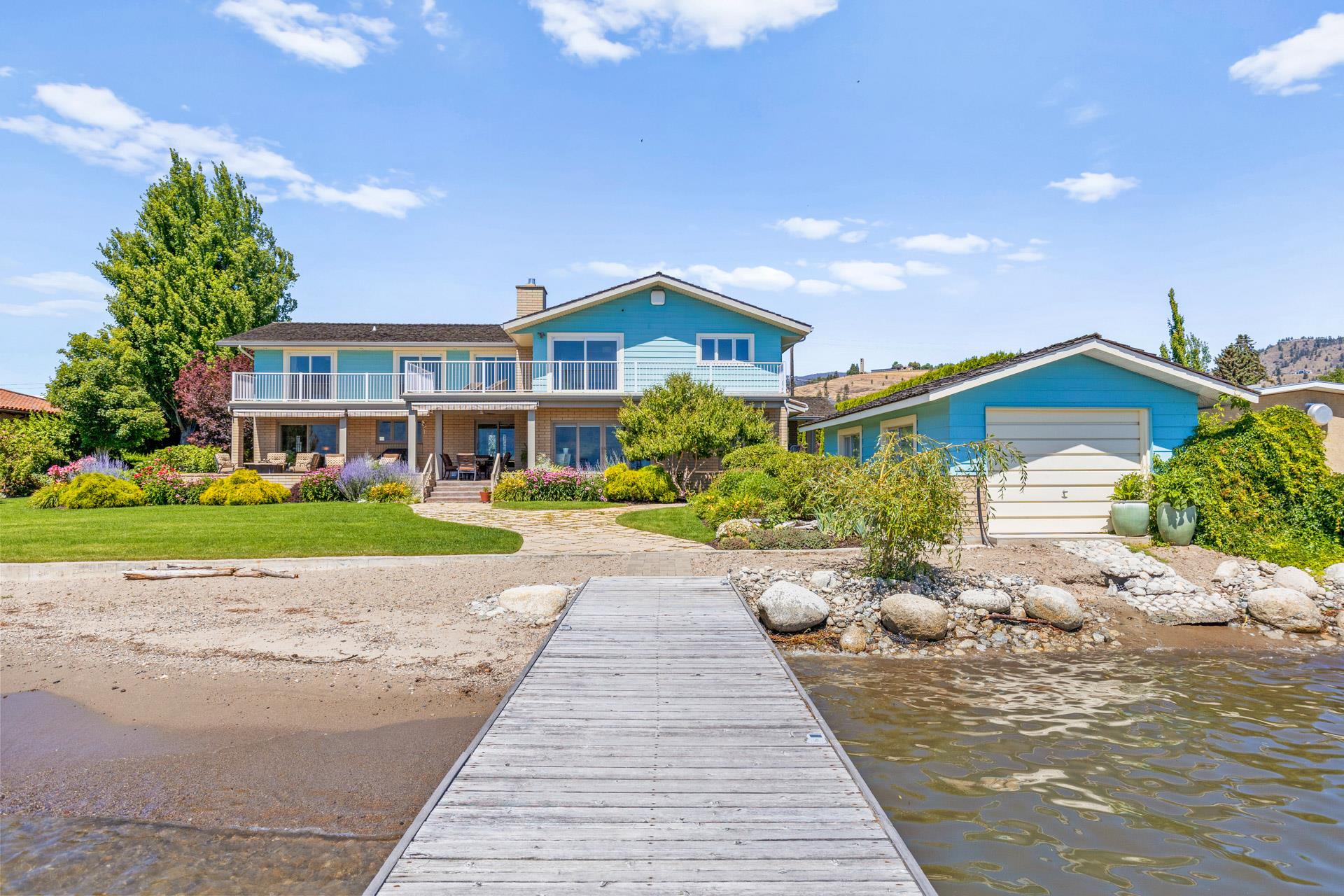 Live your Okanagan Lakefront dream with 128' of flat pristine beachfront on nearly .5 of an acre. Enjoy your licensed dock with 2 lifts, a boathouse for lake toys, and a lush irrigated yard with maple,pine,fruit trees, and beautiful flowers. The Chef's kitchen offers a Thermador fridge, Induction cooktop, wine fridge, and inspiring lake views, perfect for entertaining, or quiet mornings. The main floor boasts Inside,bamboo flooring,large windows, and a seamless flow between laundry room, recently renovated bedroom and bathroom, den with elegant wainscotting, sunken living room and dining area. A European sauna upstairs offers you your own private spa, while the Primary bedroom is a perfect sanctuary with stunning lake views, an ensuite that makes one feel spoiled, and large patio deck so one can capture the lake and mountain views. A newer furnace(2022),and AC ensure year round comfort. An oversized 2-auto garage with workspace area, and plenty of driveway parking for guests. From morning paddles to sunset gathering ,embrace lakeside living at its finest on Lake Okanagan.