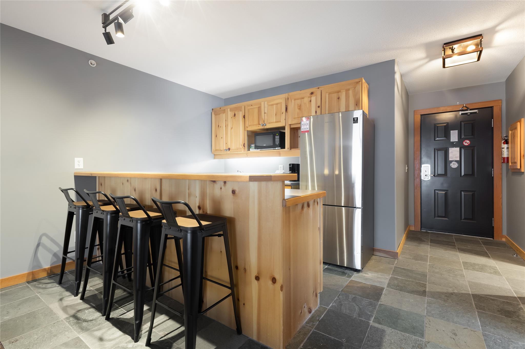 Discover the ultimate ski-in/ski-out opportunity with this top-floor, corner unit nestled right in the heart of the village! Whether you're an investor looking for a prime rental property or a mountain lover seeking your own slice of alpine paradise, this spacious 1-bedroom, 1-bathroom gem is ready to impress. Step inside one of the largest units in the building and be greeted by an open, airy space that comfortably accommodates up to 4 guests. Enjoy the warmth of the gas fireplace, whip up meals in the fully equipped kitchen that whole family can enjoy. Strata fees include heating, cooling, wifi and cable making it an effortless investment with no surprises. Leave your car in the designated parking spot, store your gear in the private locker, and hit the slopes right beside the Plaza Chair. The location, space and amenities tick all the boxes to ensure you maximize on nightly rentals. After a day carving through fresh powder, relax in the communal hot tub or refuel at the renowned Black Diamond Restaurant—both just steps away. A property like this doesn't come along everyday and doesn't just make for a great investment, but a place to create memories for a lifetime