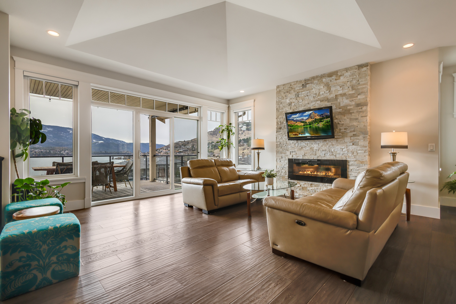 Breathtaking Kalamalka Lake views from this beautifully designed Coldstream home, priced below assessed value! Tucked away on a quiet cul-de-sac in one of Coldstream’s most sought-after neighbourhoods, this 4-bedroom, 3-bathroom home offers privacy and convenience; just minutes to downtown Vernon, and steps to Kal Beach and the Rail Trail. Thoughtfully laid out over 2,400 sq. ft., the home was built to showcase panoramic lake views from nearly every room. The bright main living area features floor-to-ceiling windows, hardwood floors, and soaring ceilings. The gourmet kitchen includes stone counters, stainless appliances, rich cabinetry, and a large island for dining and entertaining. The primary bedroom offers a luxurious ensuite and walk-in closet, while the lower level boasts a spacious family room with patio access. The private backyard features paving stones, a fire pit area, and rare back lane access; ride your bikes straight into the backyard and store gear in one of two sheds, with even more space in the oversized triple garage, ideal for a boat or workshop. Features: power blinds, heated bathroom floors, new dual-fuel furnace & A/C, hot water on demand, putting green, automated irrigation, two covered decks, and more. Picture summer afternoons at the beach, followed by evenings by the fire under the stars. It doesn’t get much better than this! A rare opportunity to own a quality family home with postcard views of Kal Lake’s turquoise waters; don’t miss it.