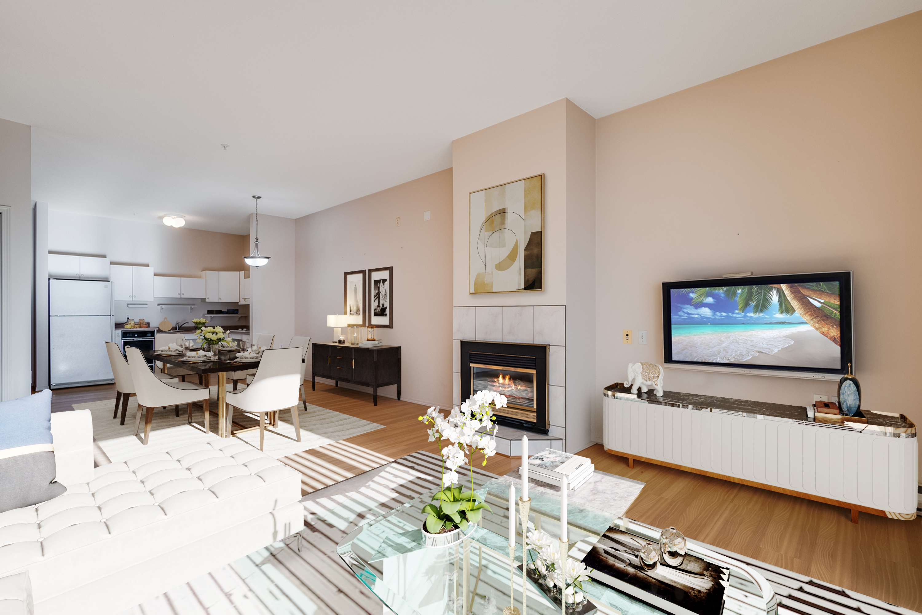 Vacant -- Quick possession possible! Discover the perfect downsizer's dream or retiree’s retreat with this spacious 1-bedroom, 1-bath unit offering unbeatable value in the Adderley community. Nestled in a prime location, this home boasts no neighbours above for ultimate peace and quiet. Thoughtfully designed with accessibility in mind, the wheelchair-friendly kitchen features low countertops and easy-to-use appliances, while the open-concept layout with high ceilings creates a bright and inviting space. Cozy up by the gas fireplace or unwind on the enclosed, south-facing patio—a serene spot for year-round enjoyment. Enjoy the added convenience of an automatic main entrance door to the building, making access effortless. Additionally, the unit door can be modified to open automatically, enhancing accessibility and ease of use. Located on the main level with convenient access to community amenities, this unit is adjacent to the clubhouse, where residents gather for social events, and surrounded by beautiful grounds with community garden beds for green thumbs. Plenty of convenient parking right at the building entrance. Close to shopping, parks, golf, and more, this home combines comfort, convenience, and a vibrant community atmosphere. Schedule your viewing today and discover the perfect retirement haven!