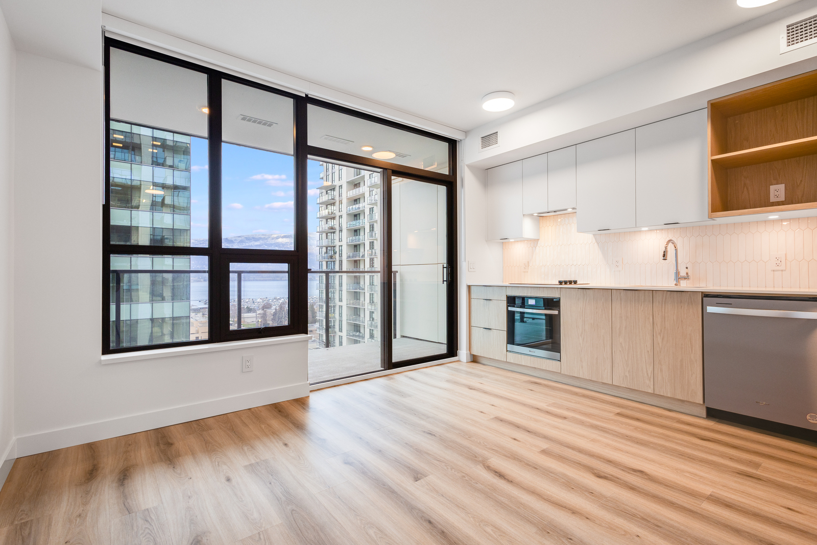 Located in the heart of downtown Kelowna, this sophisticated 15th-floor 1-bedroom condo in Mission Group's newly constructed Bertram Tower offers breathtaking west-facing views. The expansive 100 sq. ft. patio is an ideal space to enjoy stunning sunsets while taking in the vibrant downtown skyline and views of Okanagan Lake. Inside, the 443 sq. ft. condo is beautifully designed with sleek stainless-steel appliances, white cabinetry, quartz countertops, a tiled backsplash, and light plank flooring, perfectly blending modern style with practical functionality. Bertram Tower provides an impressive range of amenities, including a rooftop pool, outdoor lounge, fitness center, bocce court, dog run, dog wash station, community gardens, and grilling areas, all thoughtfully designed for year-round enjoyment. With its prime location just minutes from transit, Okanagan Lake, and the best of downtown living, this condo offers an ideal combination of sophistication, comfort, and convenience. Ready to become your next home!