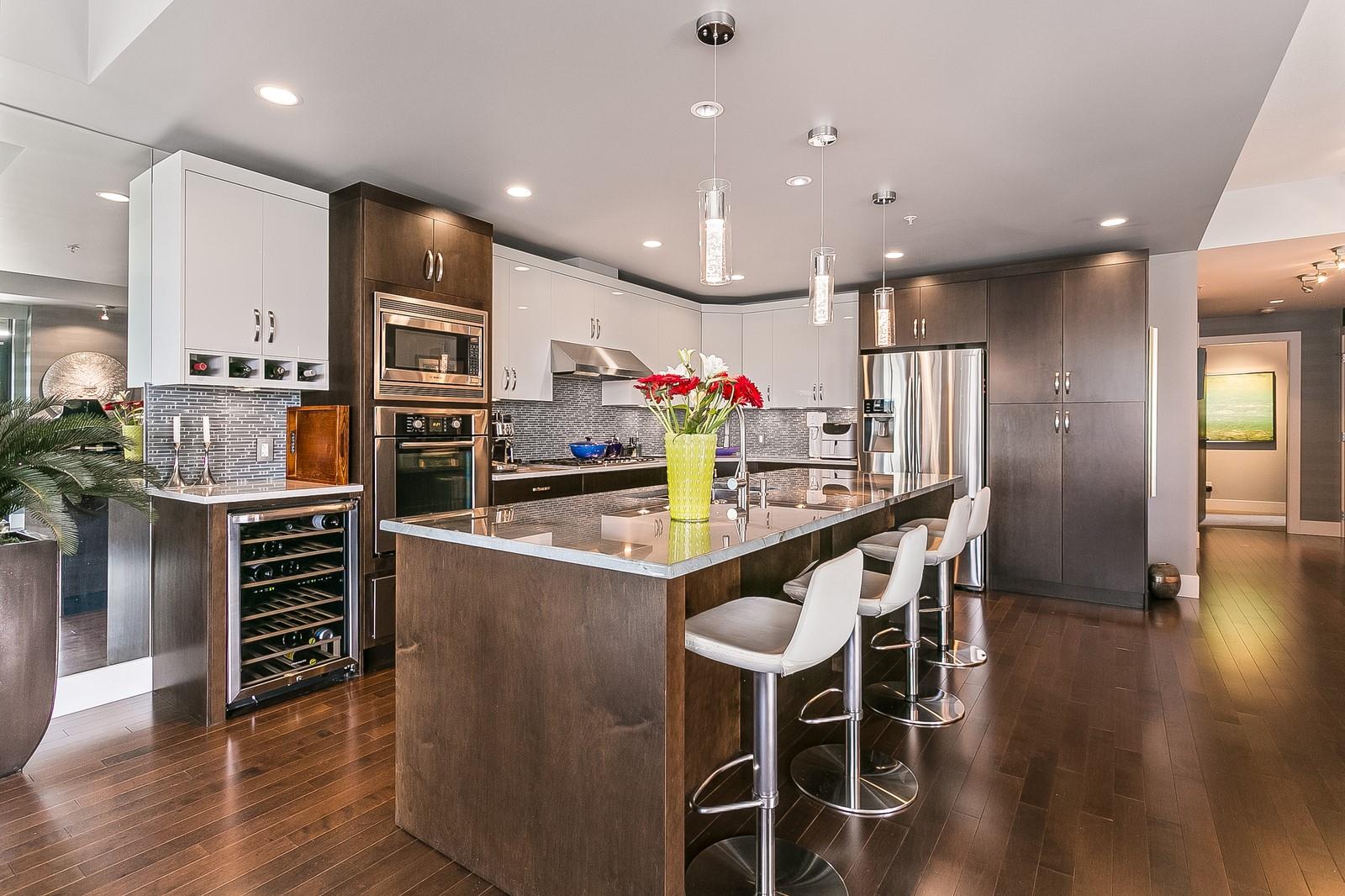 Large executive corner unit in the coveted Madison building, right in the heart of downtown Kelowna's cultural district and a short walk to the shores of Okanagan Lake. With over 1900 sq ft on one floor, this sprawling unit feels very spacious, and with countless windows, all with motorized blinds, allows you to control both light and privacy from the click of a button. Outside, you'll find a fantastic patio with lots of space to enjoy the views of Okanagan Lake and Valley. Gas is set up for your BBQ and fire pit. Two motorized retractable shades on the patio provide cover from the elements, both the sun and rain. The main area is an entertainer's dream, with a large island kitchen and stainless steel appliances, including a built-in wall oven and a gas range. Lots of additional designer upgrades have been made, making the space cohesive. A Savant smart home system allows you to control the integrated sound system throughout the unit as well as your blinds, lighting and TVs. There are three great-sized bedrooms, all with upgraded millwork in the shelving and closets. The primary suite has a gorgeous walk-in closet and spa-like ensuite with heated tile flooring and a heated towel rack. There are two underground parking stalls located adjacent to each other, located in a private alcove, and even have a convenient electrical outlet. Despite the fantastic storage inside the unit, there is also a private storage area in the parkade. Don't wait to learn more; call today!