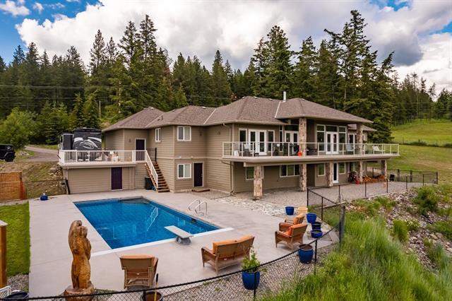 This is one not to miss. Drive through the gate of the fully fenced 9+ acres, down a short driveway, park in the double garage, and step into this beautiful home. Southern exposure means light flows into all the main living spaces. Hardwood floors, quartz counters, and stainless appliances make this home feel as luxurious as it looks. Heat the house all winter with the wood stove, or open the three patio doors to let a breeze cool the home in the summer (if you don't want to run the geothermal heating/cooling that is). The large main bedroom has a fully updated ensuite complete with free standing tub and dual shower heads in the shower. A large mudroom/laundry room, second bedroom, and huge deck with amazing views round out upstairs. Down you'll find a full recroom, 2 more bedrooms, and a studio in-law suite that can easily be made into a one bed if needed. Step outside to the private, in-ground, heated, salt water pool. The property consists of 6 acres of landscaped land and 3 acres of wooded land, including a small pond! It's relatively flat too, so it's great for horses! Bring your family and come see this amazing property today!