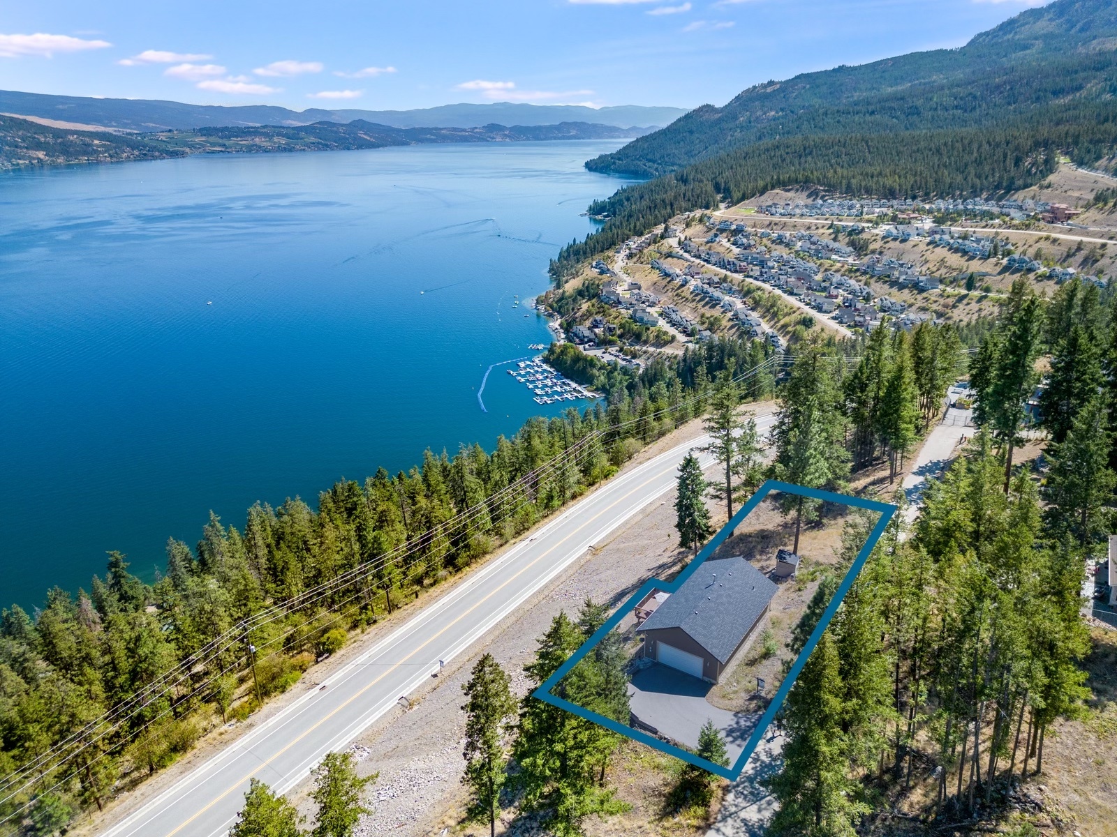 This property offers an unrivalled experience with incredible views that will leave you breathless. This property is located on it's own exclusive laneway which creates the ultimate privacy and benefit of having absolutely no neighbour's on either side of the home. Step into a world of open concept living combined with an abundance of natural light, granting you a lifestyle where everyday feels like a vacation. Prepare to be mesmerized by the unobstructed lake views that stretch as far as the eye can see. Each day will be a symphony of awe-inspiring sunrises and sunsets, leaving you feeling truly connected to nature's wonders.Indulge in the luxuries of a custom home where every detail has been carefully considered. The .31 acre lot has so much potential and just waiting for your ideas. Only minutes away from Fintry Provincial Park, where hiking trails wind through lush forests and lead to breathtaking waterfalls. Take advantage of the nearby boat launch to explore the pristine waters, or unwind on the sandy beaches under the warm sun. If La Casa was an consideration then this makes the perfect alternative option except without the strata fees or rules! Don't let this opportunity slip away! A home suitable for both long term and seasonal living. Speculation tax does not apply so this could be an option as the perfect vacation rental. Unleash your imagination, create memories, and embrace the blissful lifestyle this property offers. Your dream retreat awaits!