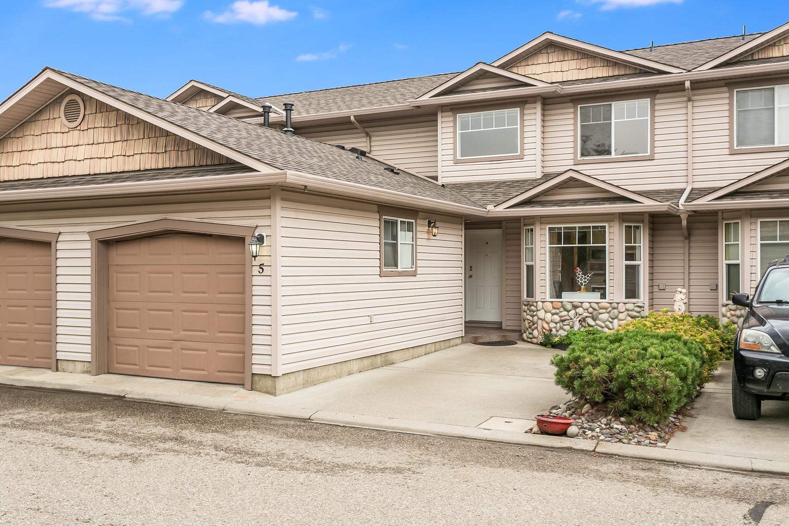 Discover the perfect rightsize, affordable home at 5-5886 Okanagan Landing, Vernon. This 3-bedroom, 2.5-bathroom townhome is a true gem nestled in a tranquil community just moments away from the beach. Enjoy the convenience of a main floor primary bedroom with a 3-piece ensuite and a spacious walk-in closet, eliminating the need for stairs. The modern touches, such as quartz countertops in the kitchen and updated laminate flooring, provide a premium ambiance. Abundant natural light pours in through 2 solar tubes, creating a warm and inviting atmosphere. Additional perks include an insulated and heated garage, newer hot water tank, ample storage in the large crawl space, and low-maintenance composite fencing. Plus, this pet-friendly community welcomes small dogs. Don't miss out on this well-cared-for home on the quiet side of the community – it's a rare find! Schedule your viewing today and seize this opportunity to be conveniently located to the beach, shopping, schools and amenities!